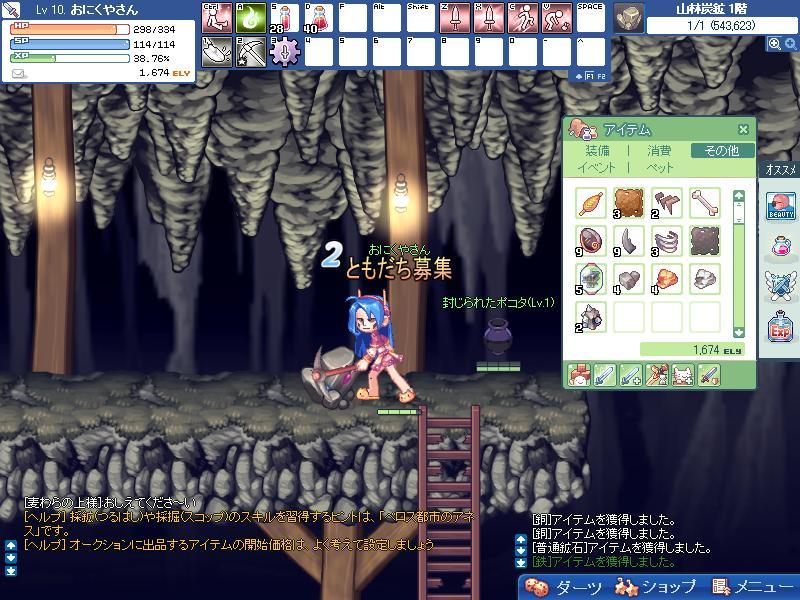 今日は渋い顔でずーっとつるはし振り回してたw そして、武器作ってた。 ときめく要素は、特にないw そんなおにくやさんは、サファイア鯖で活動中! いつでも誰でも呼び止めるがよかですよ。ほら穴から出てこないけどw
