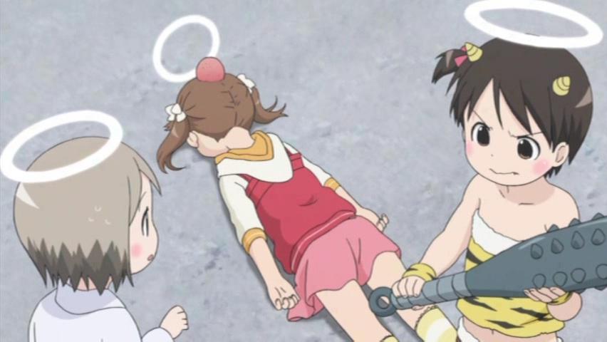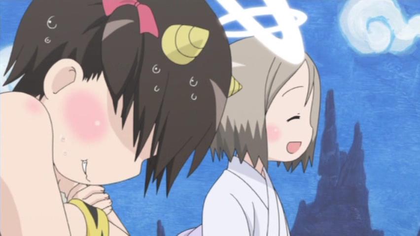 という質問はしないでください。 「アイドルになりたい!」 何の脈絡もなく出る美羽の発言。そして... ↑にほんブログ村のランキングに参加してます。良かったらポチっと! 端的にキャプチャしつつ感想。 オープニング さりげなく美羽の格好がエロすぎる件。 だが、オープニングのほんの一瞬のひとコマだけで以後さっぱりこの格好の絵がない。無念。 前半 アバンで「アイドルになりたい!」と言って、バック転をした美羽。 そのままお亡くなりになったようですww あの世の案内人、野口さんに案内されて閻魔大王のもとへ 伸恵かよw 一番人を裁くのに向いてない性格でしょうがw 美羽の生前の資料を見ながら一言 「ロクなやつじゃねえな・・・」 「えー、死因は・・アイドルになると言ってバック転、頭を打った。・・・馬鹿か貴様?」 いやもうほんとひどい死因だよ。笑わずにはいられんww 「あー・・・地獄でいいや」 すごい適当な判断で地獄行きw 地獄では鬼の佐々木さんが待っていました。 「これらをネタに使ってボケてみろ」 なぜか、地獄ではお笑いの課題が用意されていました。 「裸族!!」 地獄では相手にしきれないため、天国に送ることになりましたw 「うぇるかむ とぅ しょうてん」 天使になってもアナちゃんは英語がダメでしたw 「ねぇねぇ、これパンツはいてんの?」 うーんもう良くわかんないぞww ・・・ で、まあ。例によって夢オチw 目を覚ました美羽は・・ 「篠原さん、パンツははいた方がいいよ」 はいてなかったのかwww ******** 後半 自由学習。 みんなで写生をすることに。 松岡画伯の作品は、どれも秀逸すぎるwwwww プリーンってww PR